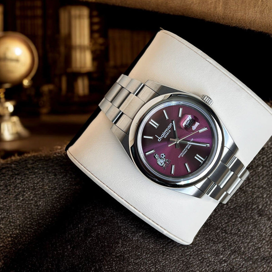 Experience elegance with the Superlative Chronometer Chairman Geneve Gents Watch. Featuring a striking purple dated...