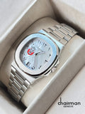 Elevate your style with the Chairman Geneve ABU DHABI Emblem Gents Watch. Featuring a crisp white dial with elegantly dated Arabic numerals, this timepiece combines tradition with modern design. The silver chain strap adds a sleek, refined touch, making it perfect for any occasion. Durable and sophisticated, it’s a statement of timeless elegance for the discerning gentleman.