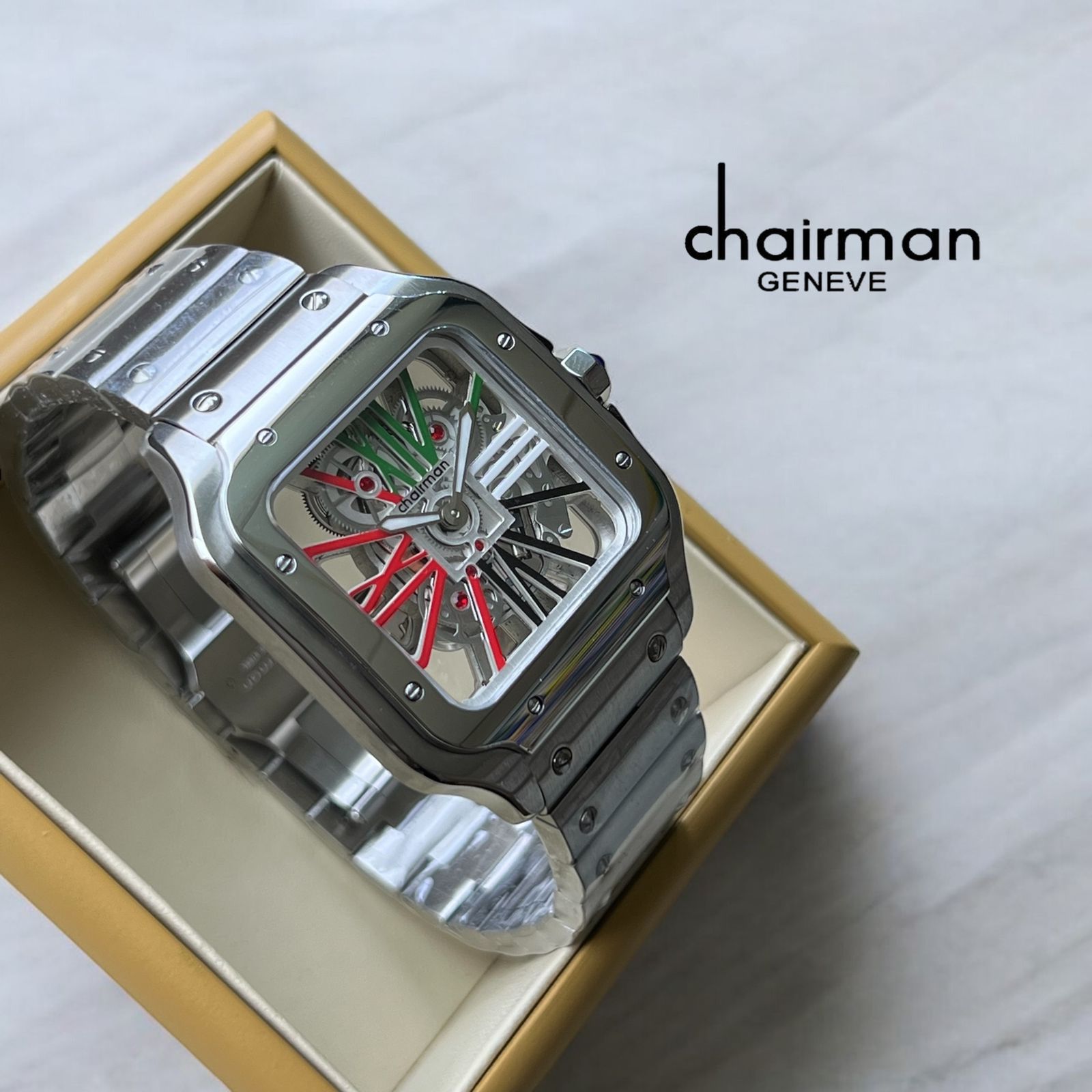 Elevate your style with the Chairman Geneve Mechanical Dial Silver Chain Gents Watch. Featuring a precision mechanical dial and a sleek silver chain, this watch combines classic craftsmanship with modern design. Perfect for men who appreciate elegance and reliability, it offers timeless appeal suited for both formal occasions and everyday wear.