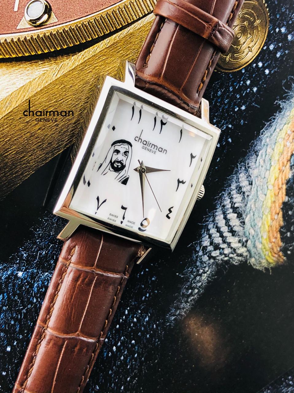 ساعة شيرمان للرجال بمينا عربية بيضاء وإطار ذهبي وحزام بني
