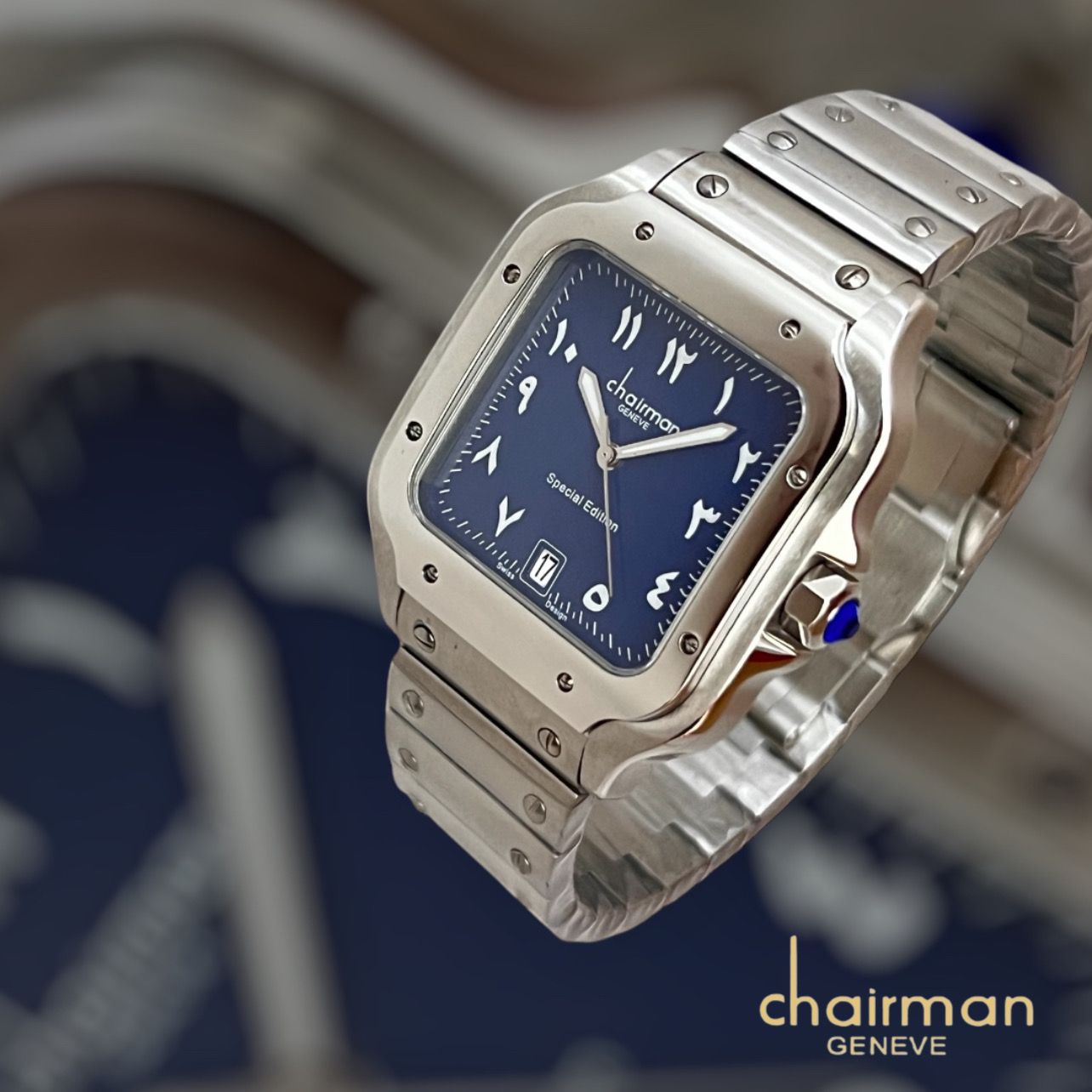 Special Edition Chairman Geneve Arabic Dated Blue Dial Silver Chain Gents Watch