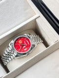 UAE Emblem Chairman Geneve Day And Dated Red Dial Silver Chain Gents Watch