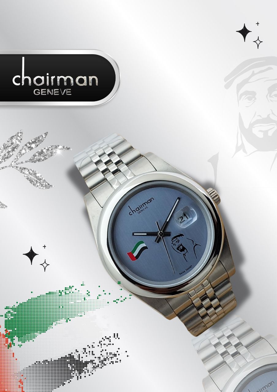 ساعة علم الإمارات العربية المتحدة مع صورة الشيخ رئيس مجلس الإدارة
