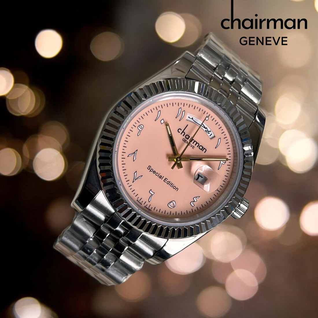 ارتقِ بأسلوبك مع ساعة Chairman Special Edition ذات المينا العربية باللون الوردي الفاتح والسلسلة الفضية....