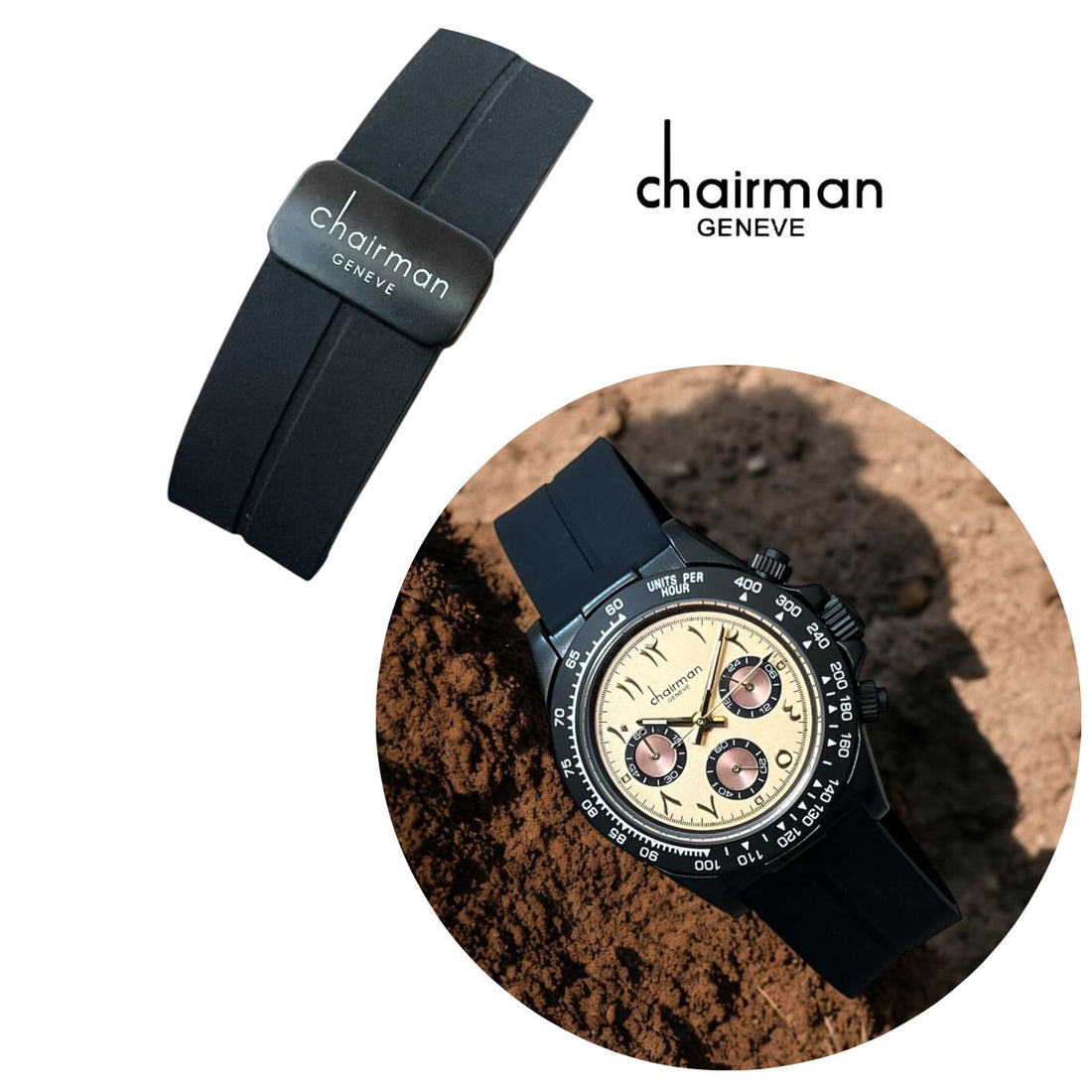 تتميز ساعة Chairman Geneve الأنيقة هذه بمينا كريمي عربي مذهل وحزام أسود أنيق ينضح بالفخامة...