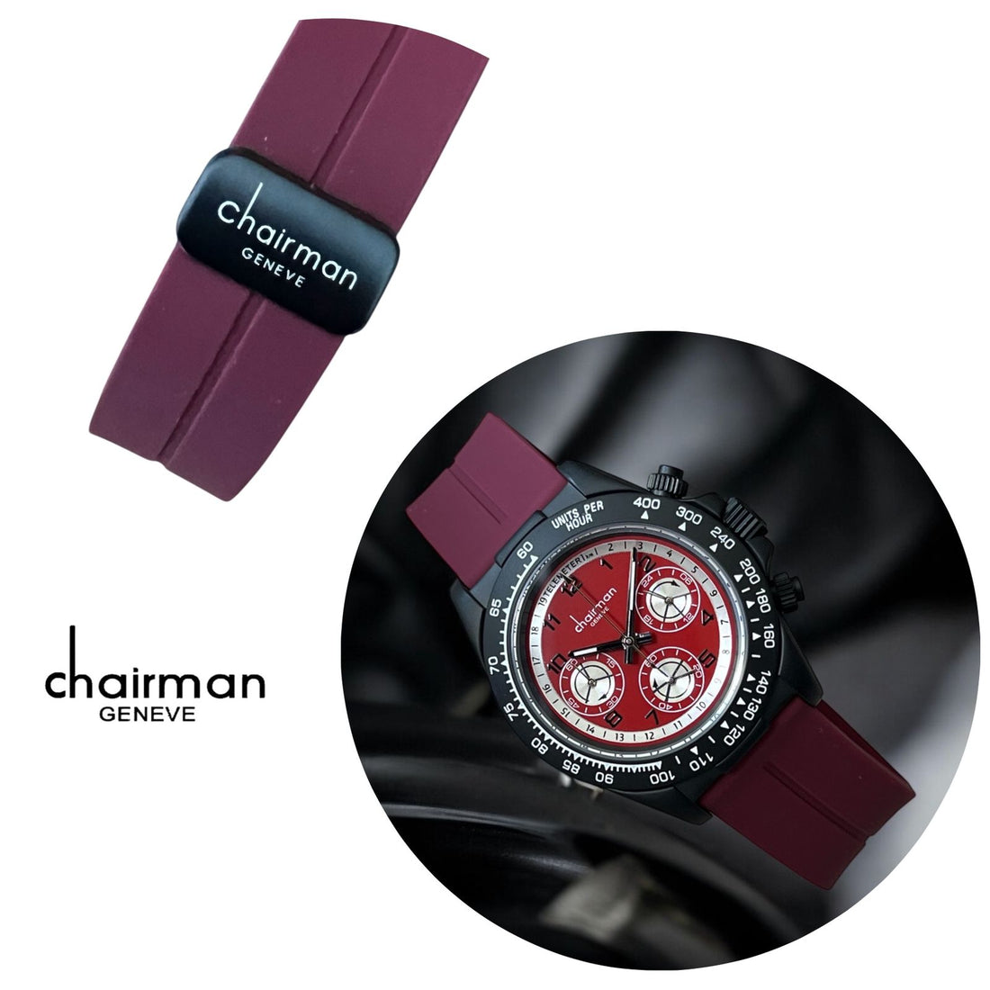 نقدم لكم ساعة Chairman Geneve Maroon Dial Maroon Strap للجنسين. بفضل ميناها العنابي الأنيق وحزامها...