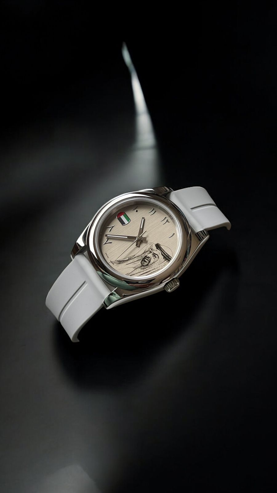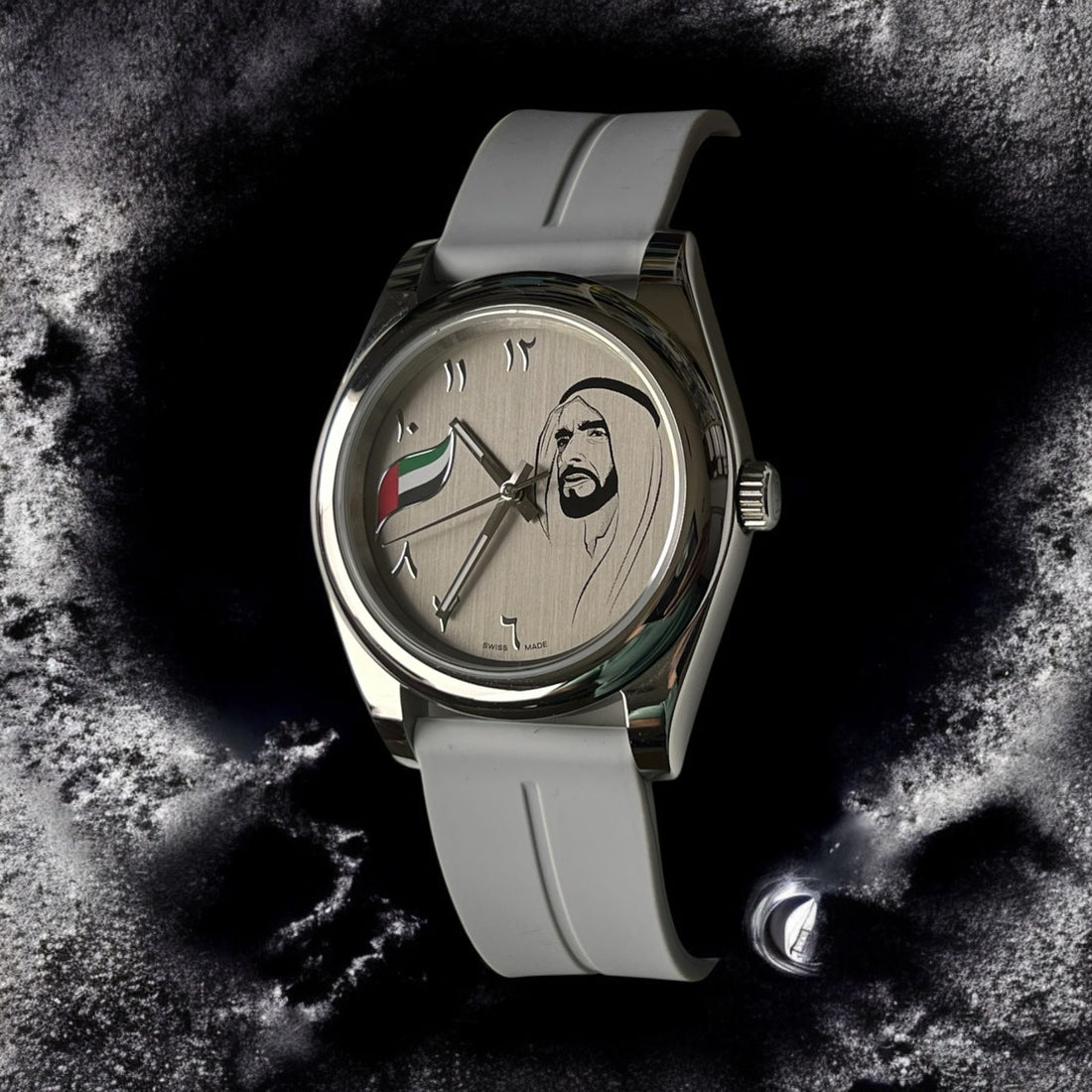 Celebrate heritage and style with the UAE Flag Sheik Photo Arabic Grey Dial Silver Chain...