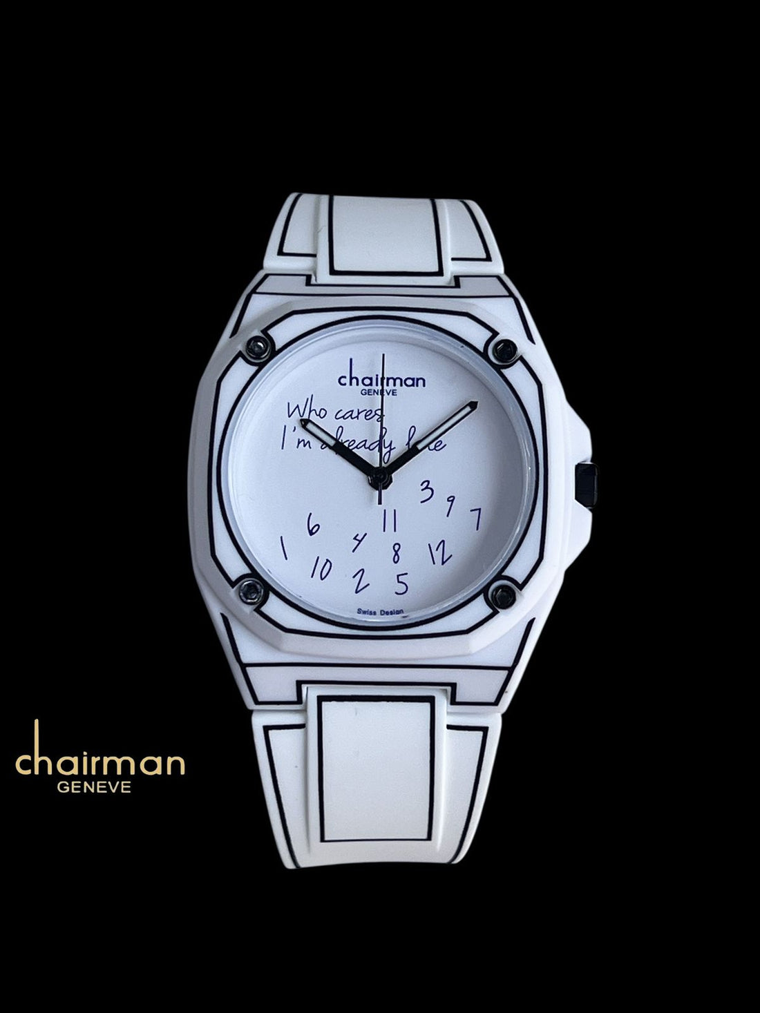 Swiss Design Chairman Geneve Black Letters White Poly Carbon Gents Watch