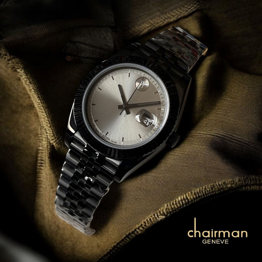 Swiss Chairman Geneve Design Dated Grey Dial Black Chain Gents Watch