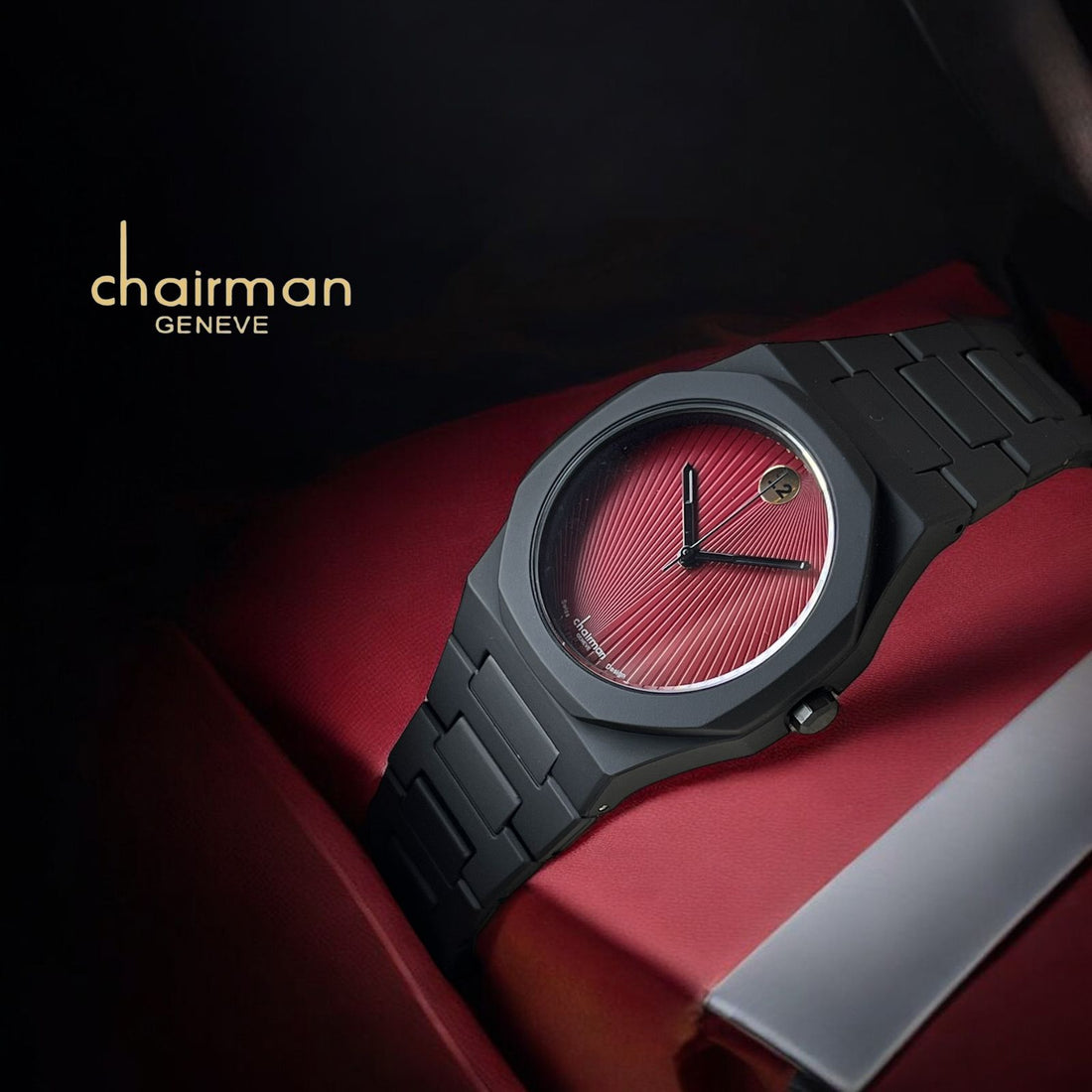 Elevate your style with the Chairman Geneve Maroon Dated Dial Black Chain Gents Watch. Featuring...
