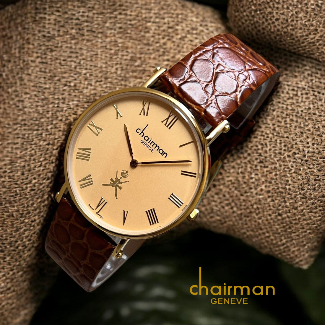 Chairman Geneve OMAN Emblem Roman Numeral Beige Dial Brown Strap Gents Watch