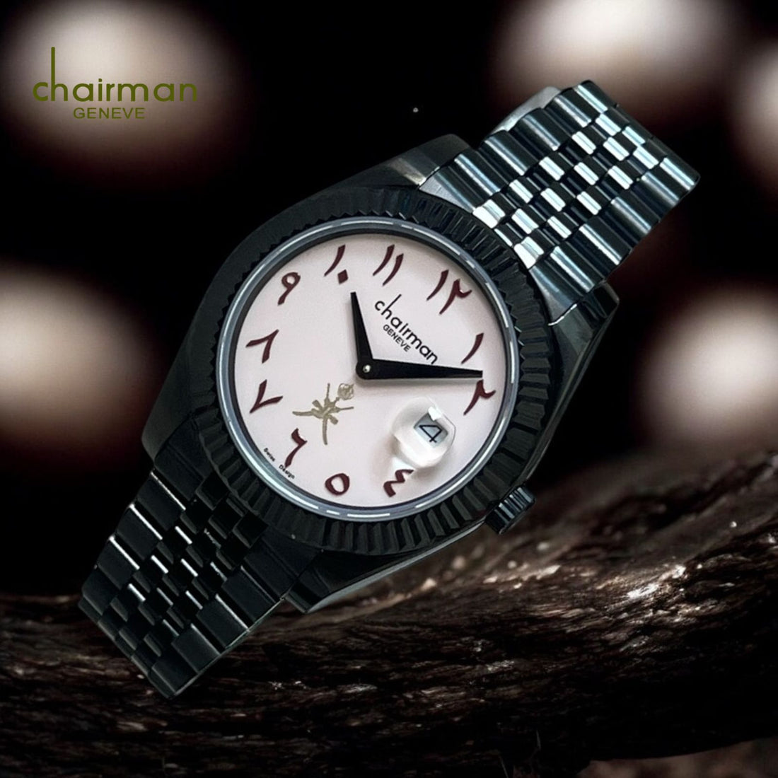 نقدم لك ساعة Chairman Geneve Arabic Dated Pink Dial Black Chain للرجال! تتميز هذه الساعة...