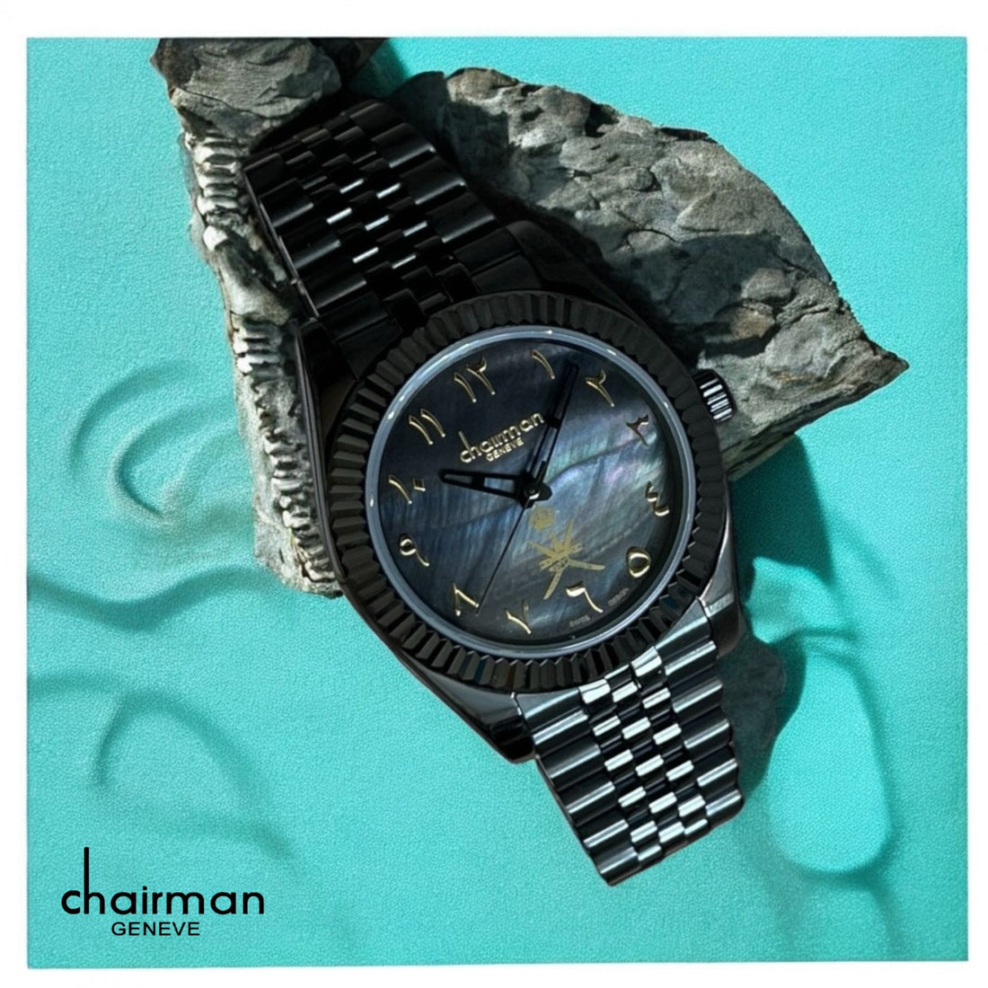 قم بترقية أسلوبك مع ساعة Chairman Geneve Arabic Day And Dated Black Dial Black Strap...