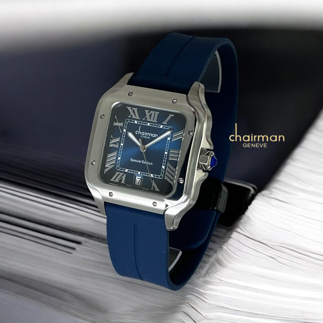 ساعة Chairman Geneve Dated Roman Blue Dial Blue Strap للرجال