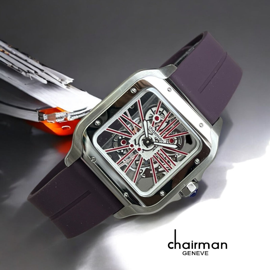ساعة Chairman Geneve الميكانيكية التناظرية للرجال بسوار أرجواني