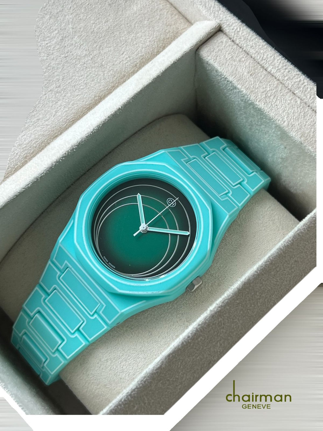 استمتع بدقة وأناقة لا مثيل لها مع ساعة Superlative Chronometer Chairman Geneve. الميناء الأخضر المذهل...