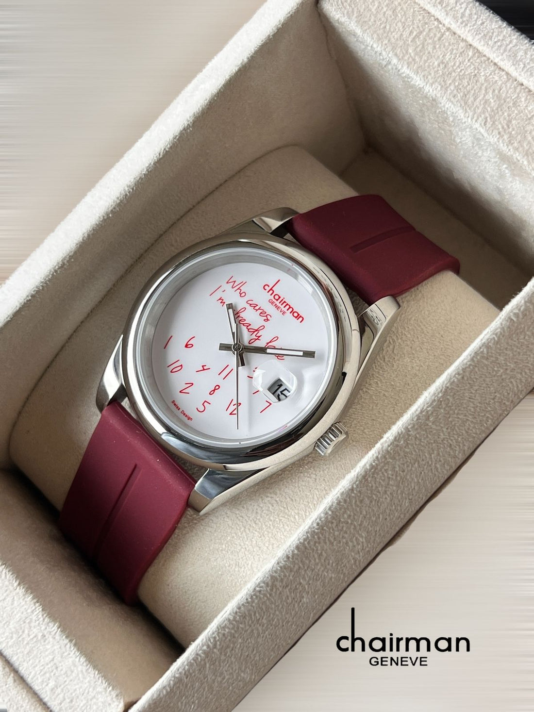 Swiss Design Chairman Geneve White Dated Dial Maroon Strap Gents Watch