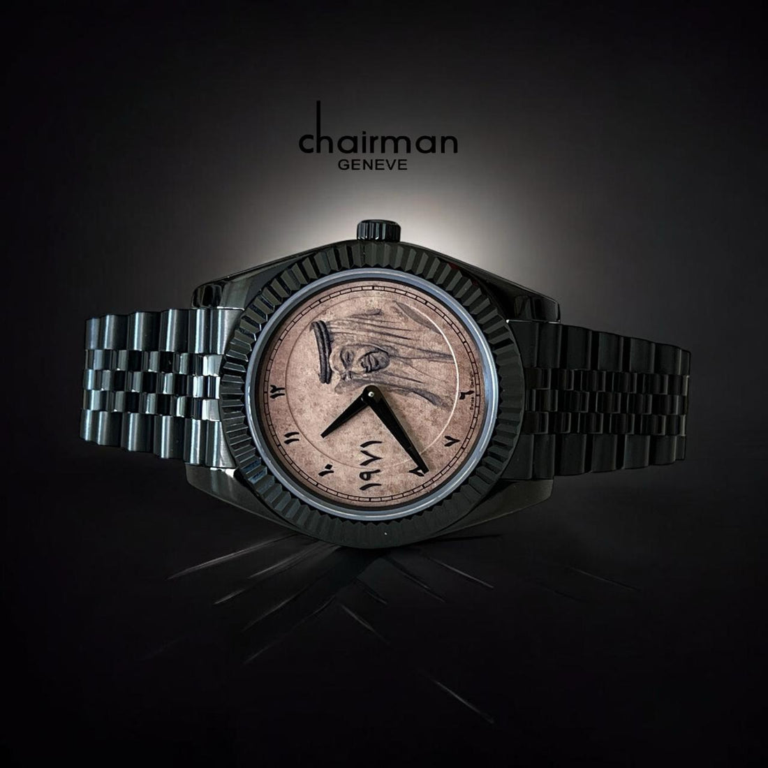 ارتقِ بأسلوبك مع ساعة Chairman Geneve UAE Sheik Photo Arabic Brown Dial Black And White....