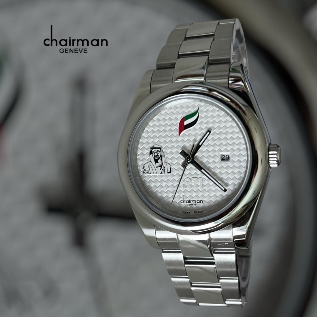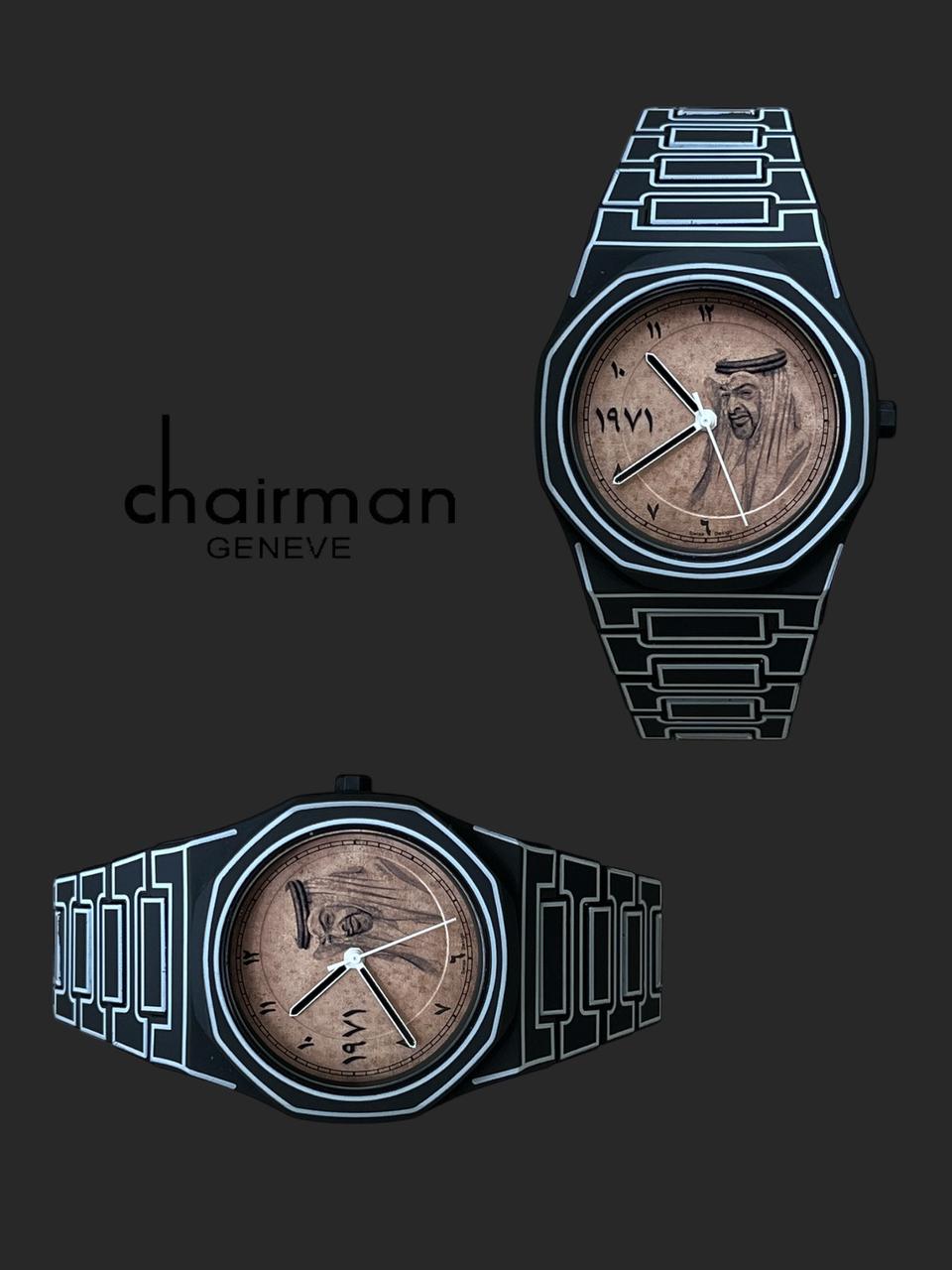 عبر عن فخرك وأسلوبك مع ساعة Chairman Geneve UAE Flag. تعرض صورة مذهلة لشيخ على...