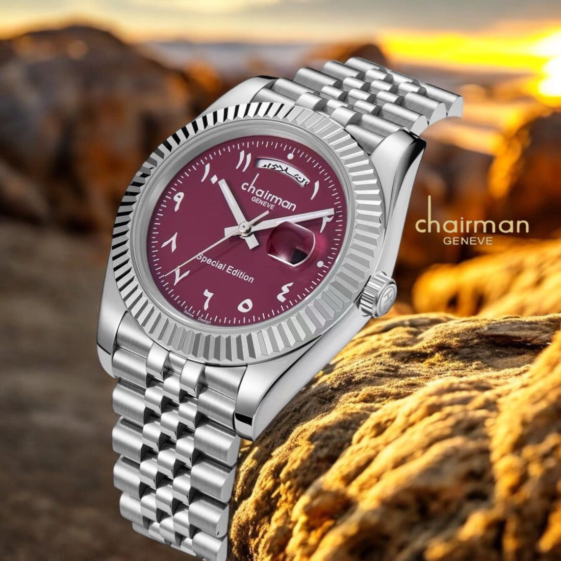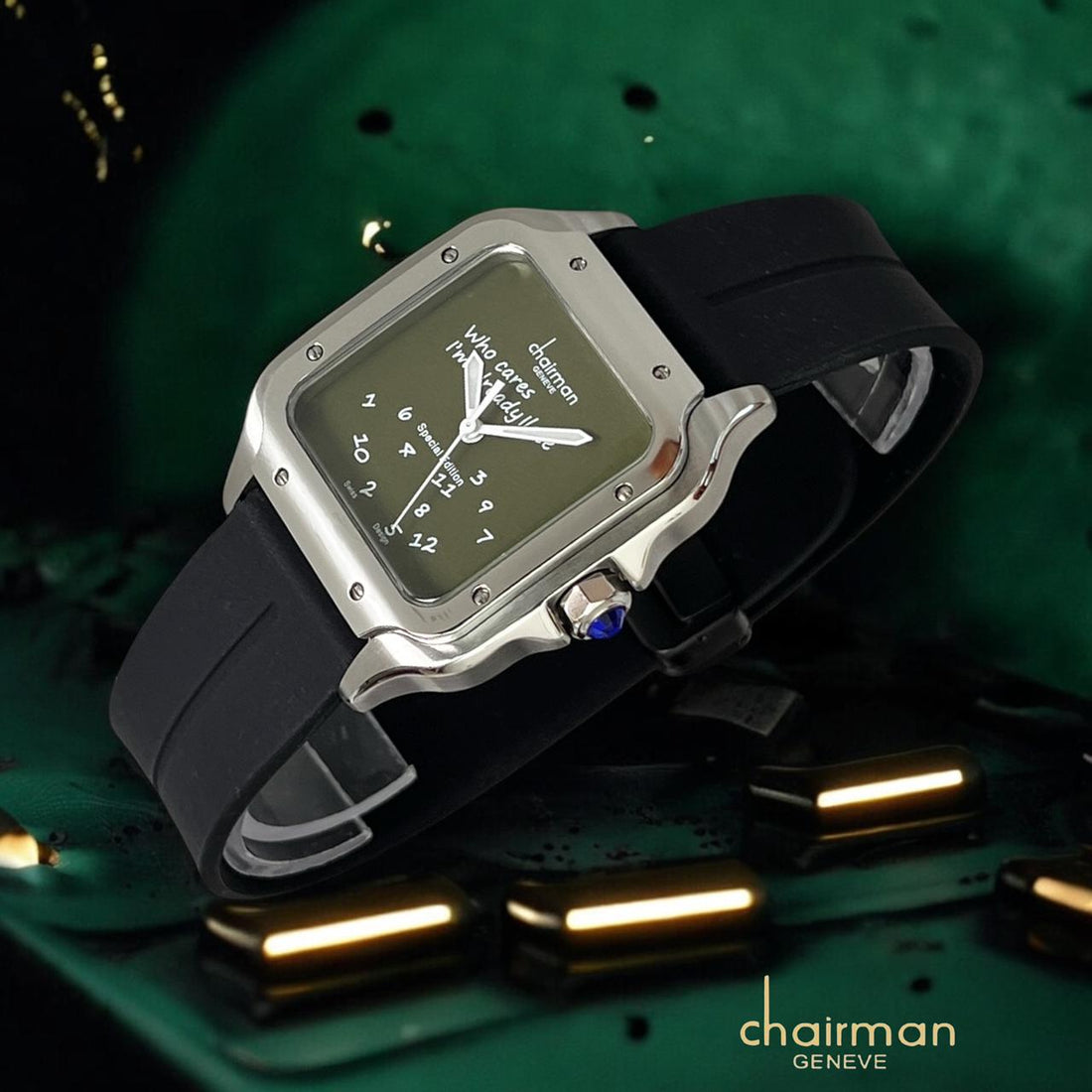 Experience timeless elegance with the Special Edition Chairman Geneve watch. Featuring a striking green dial...