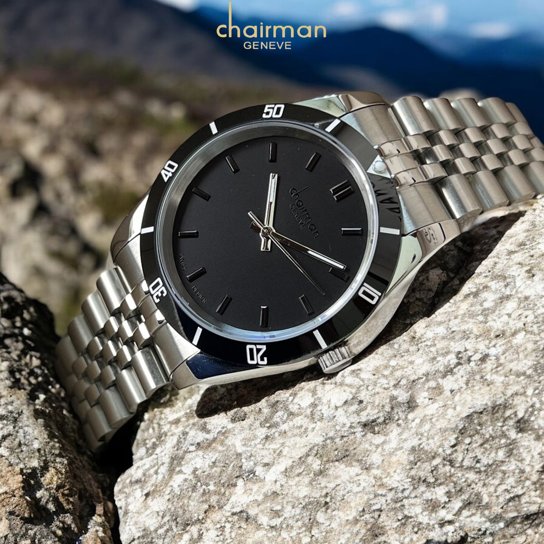 Swiss Design Chairman Geneve Black Dial Silver Chain Gents Watch