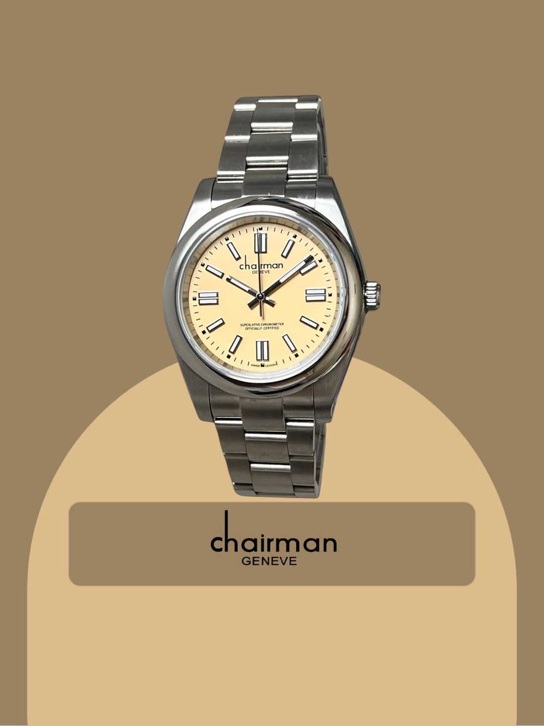 Superlative Chronometer Cream Dial Silver Chain Chairman Geneve Gents Watch