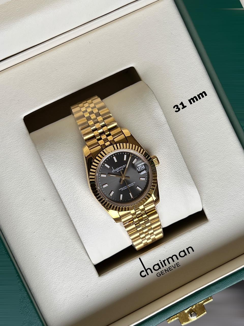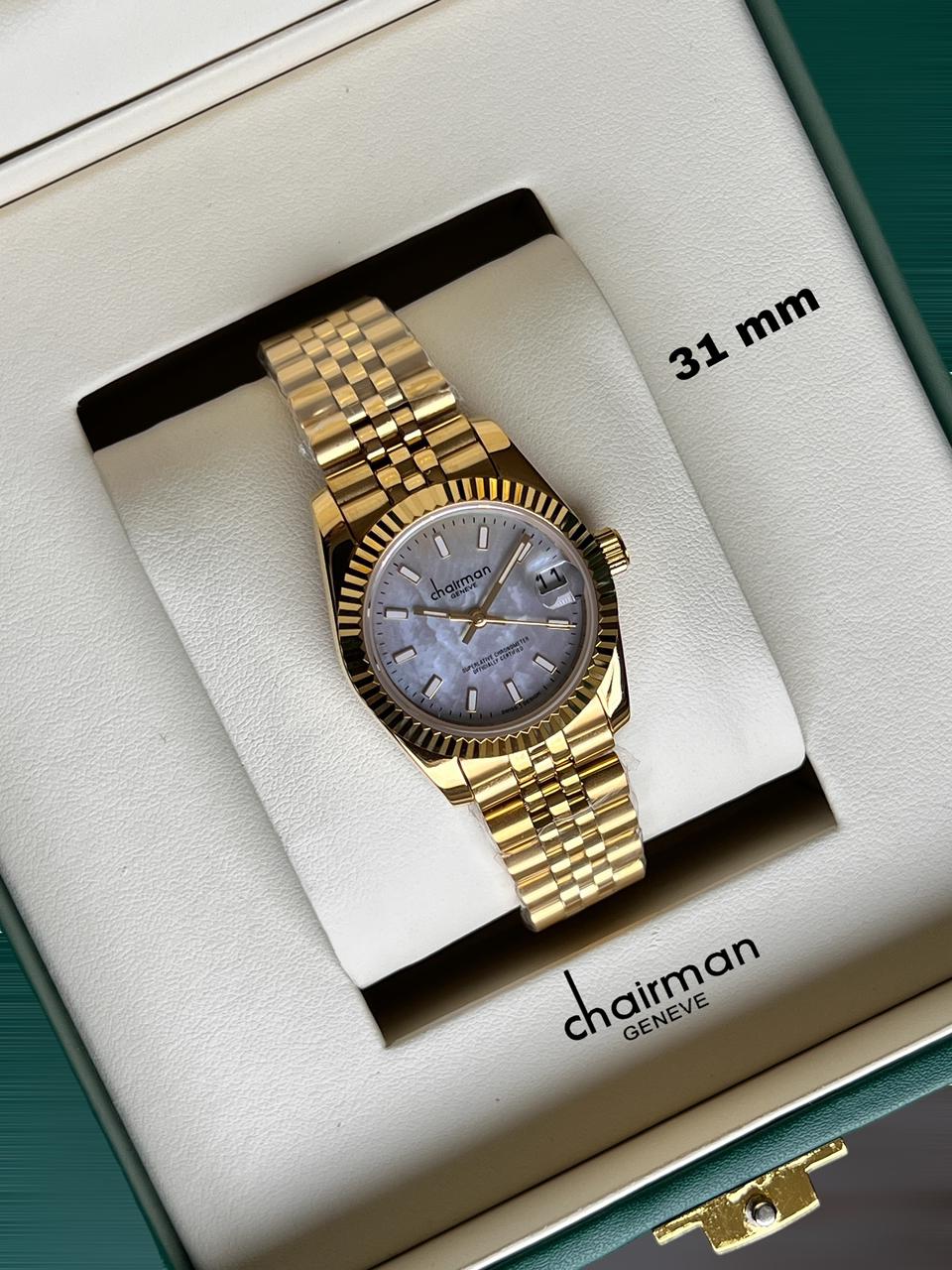 Chairman Geneve Golden Dated Dial Golden Chain Ladies Watch