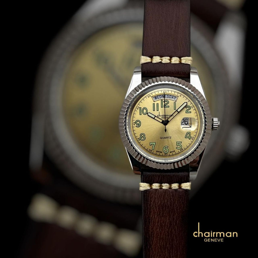 نقدم لك ساعة Chairman الفاخرة ذات الحزام البني والقرص الذهبي، وهي مثالية لأي مناسبة. تتميز...