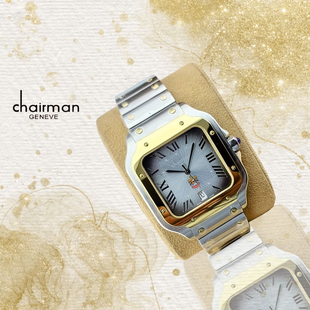 تألقي بأناقة مع ساعة Chairman Geneve Silver Gold Strap ذات المينا الرمادية المستطيلة! تتميز هذه...