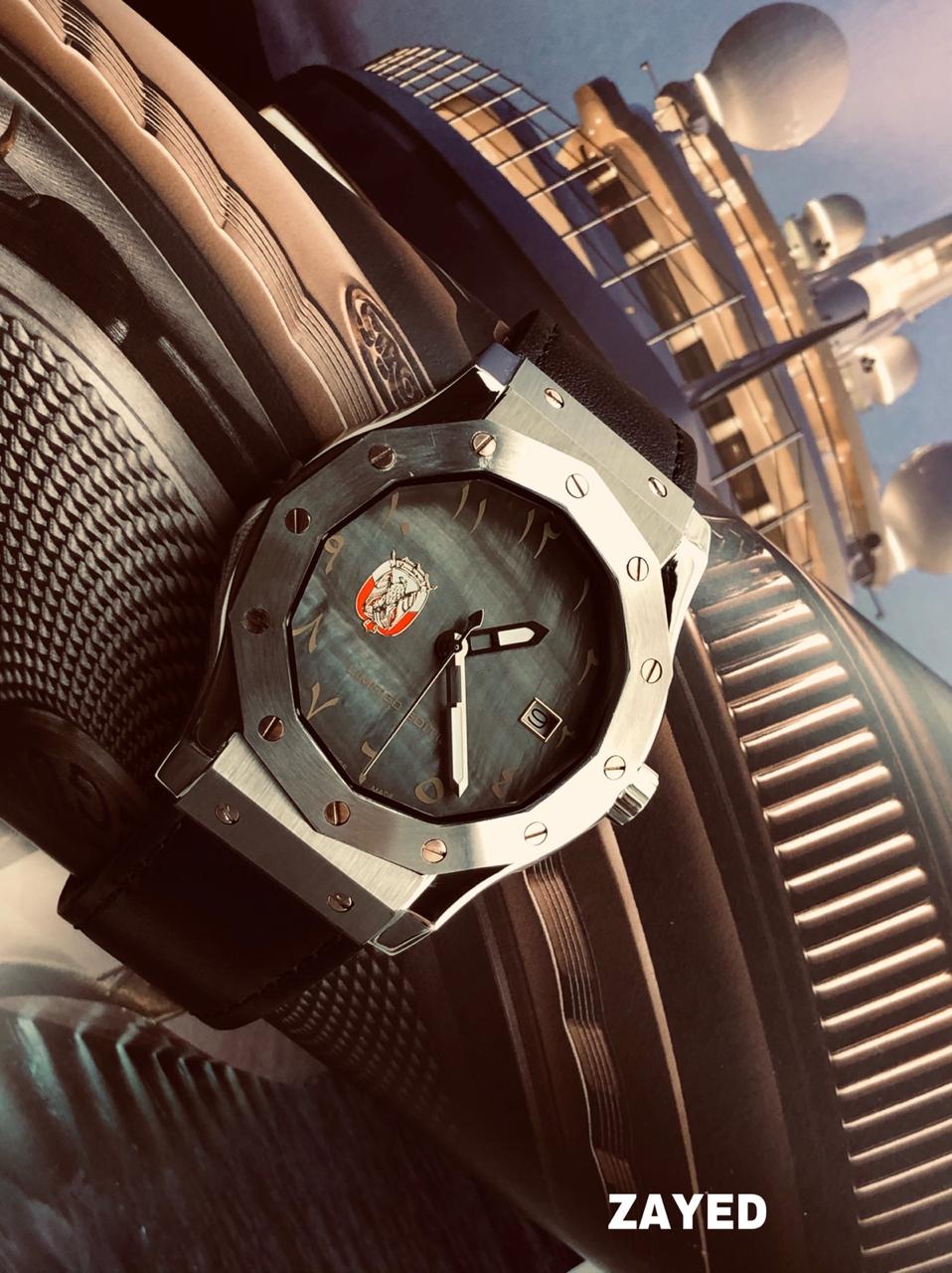 ساعة زايد المعدنية للرجال بإصدار محدود وحزام أبيض مينا عربية ضمان لمدة سنة واحدة صنع...