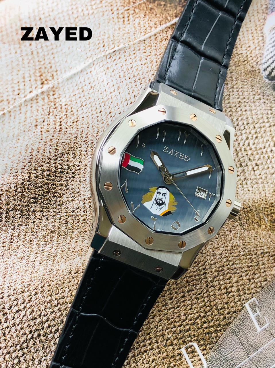 ساعة زايد الذهبية للرجال بإصدار محدود وحزام رمادي علم الإمارات العربية المتحدة وأبو ظبي في...
