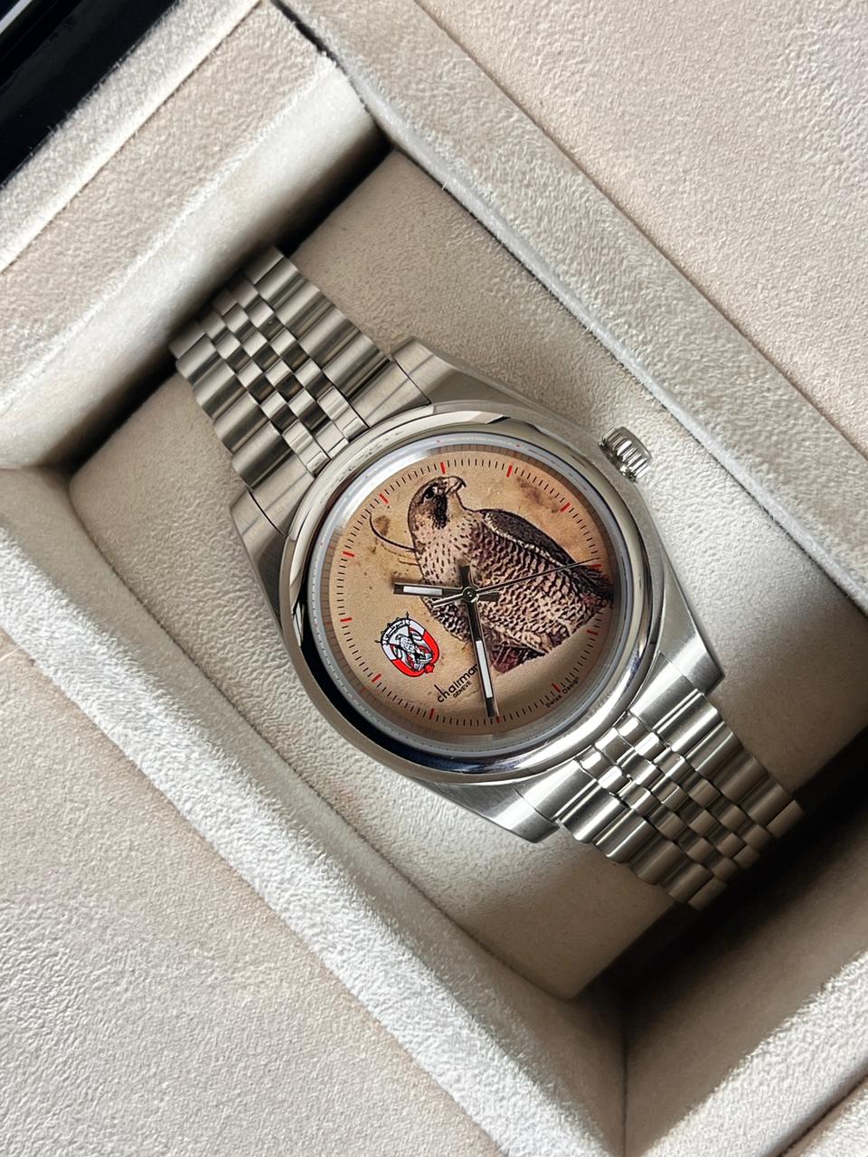 Elevate your style with this distinguished ABU DHABI Emblem Chairman Geneve timepiece. Featuring exquisite Swiss design elements, a sophisticated vintage dial, and premium silver chain, this luxurious gents watch seamlessly blends traditional craftsmanship with modern elegance. Perfect for the discerning gentleman who appreciates timeless accessories with prestigious heritage.