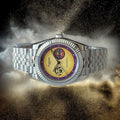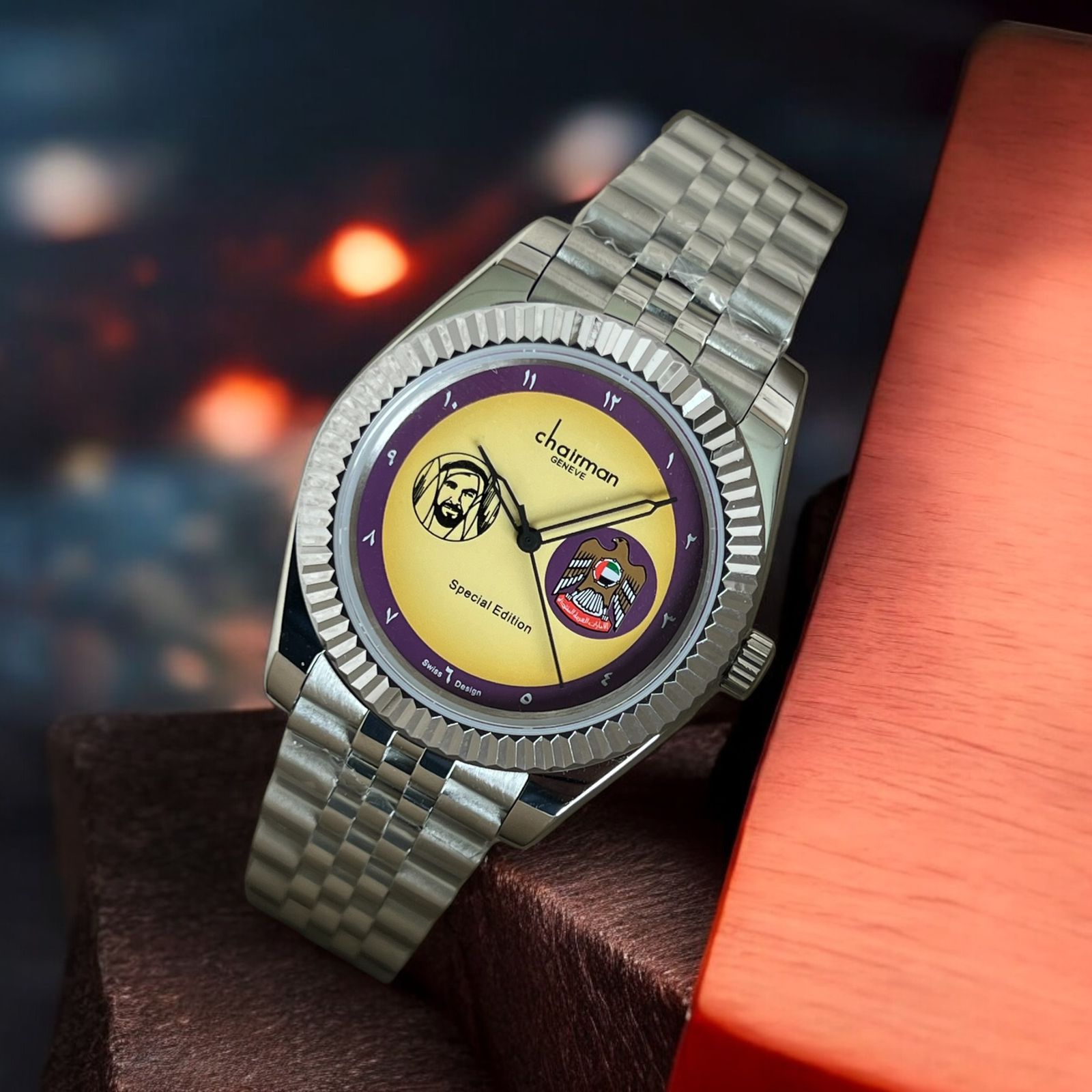 ساعة نسائية من شيرمان جينيف بسلسلة فضية وميناء عربي بعلم أبو ظبي