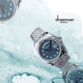 ساعة هدية للرجال بمينا عربية ومينا أزرق من قماش الدنيم - صناعة سويسرية وحزام سلسلة فضية من Chairman