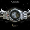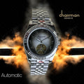 ساعة تشارمر جينيف أوتوماتيكية للرجال بمينا رمادية وسوداء وسلسلة فضية