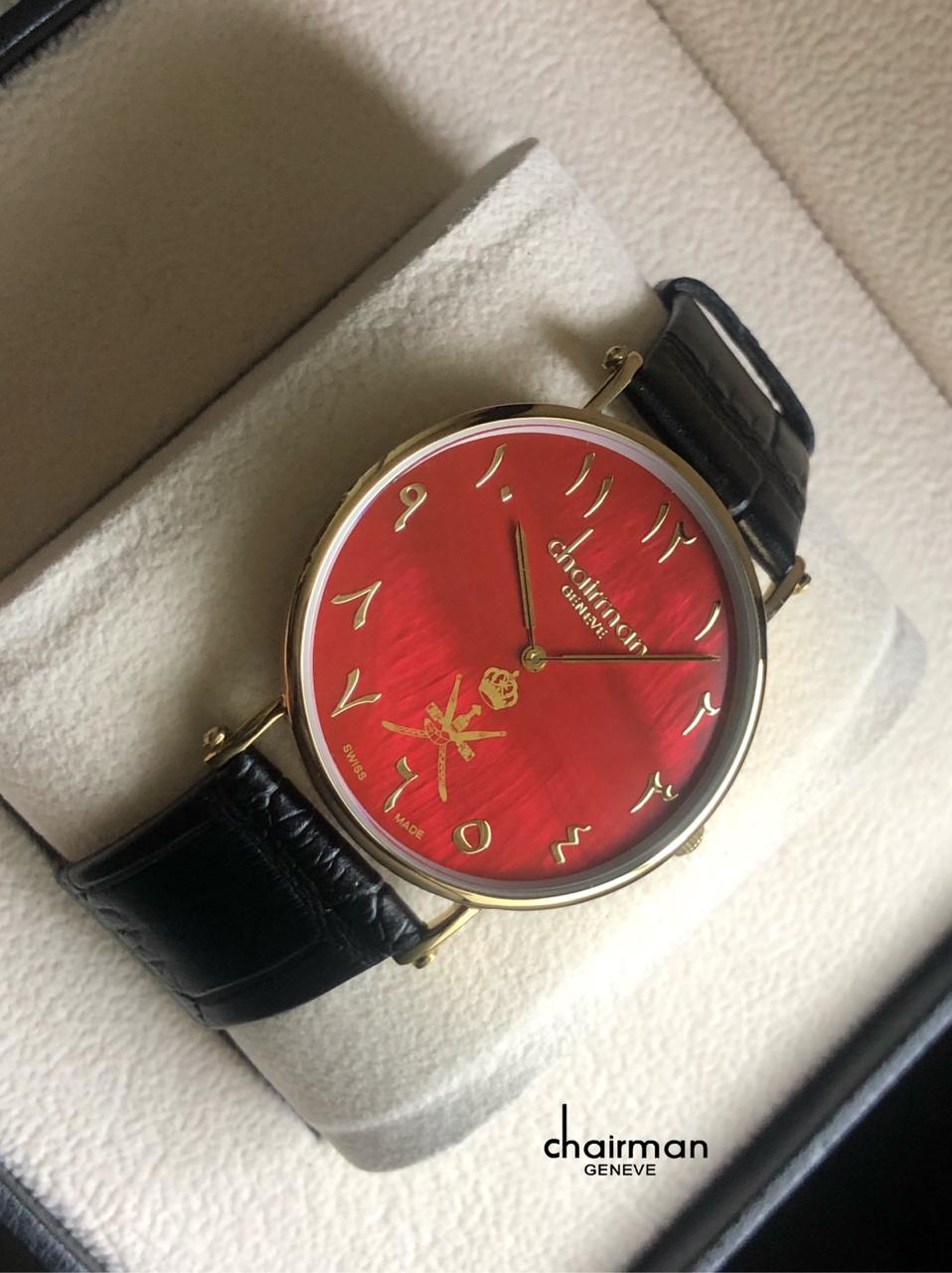ساعة شيرمان للرجال بسوار أسود ومينا حمراء وأرقام عربية