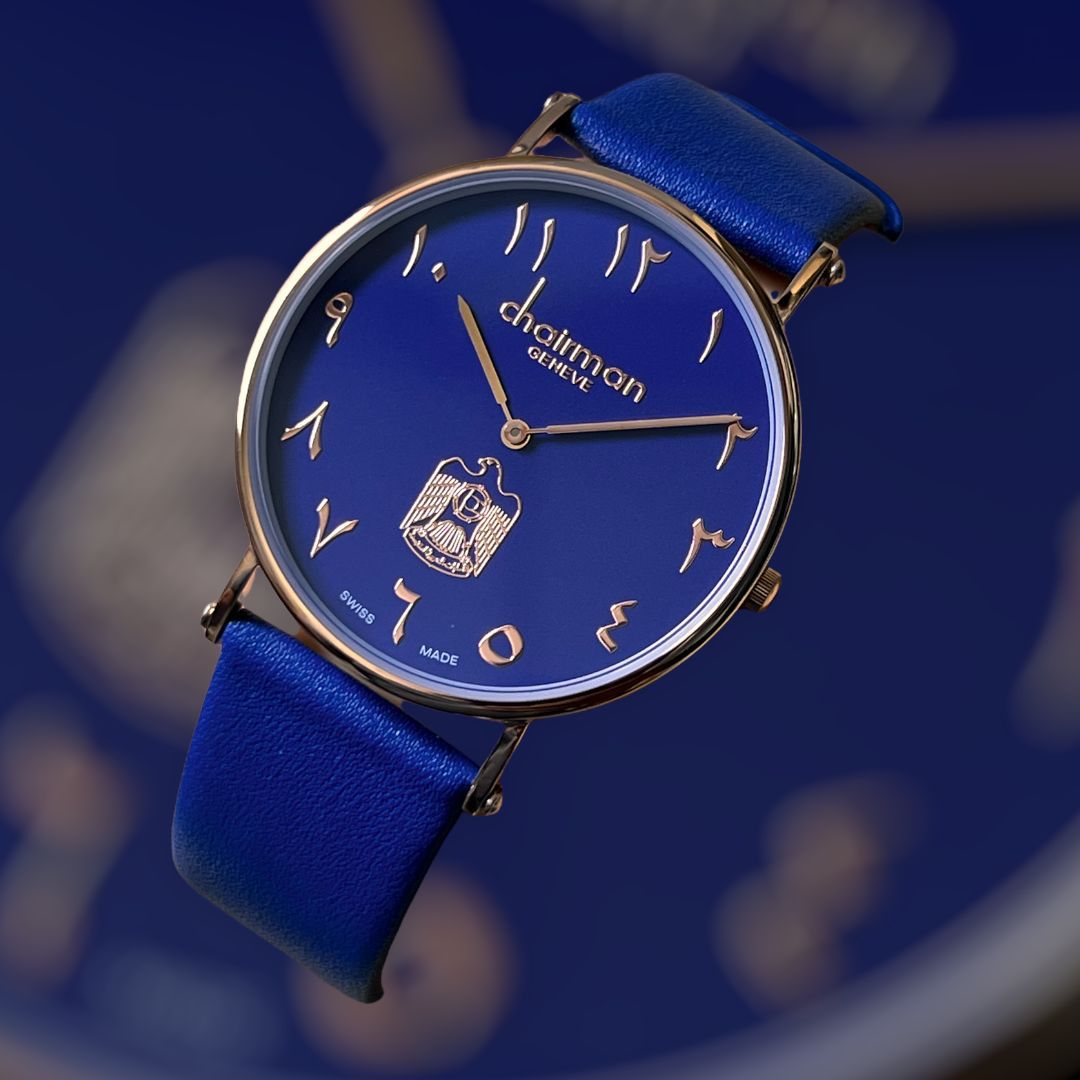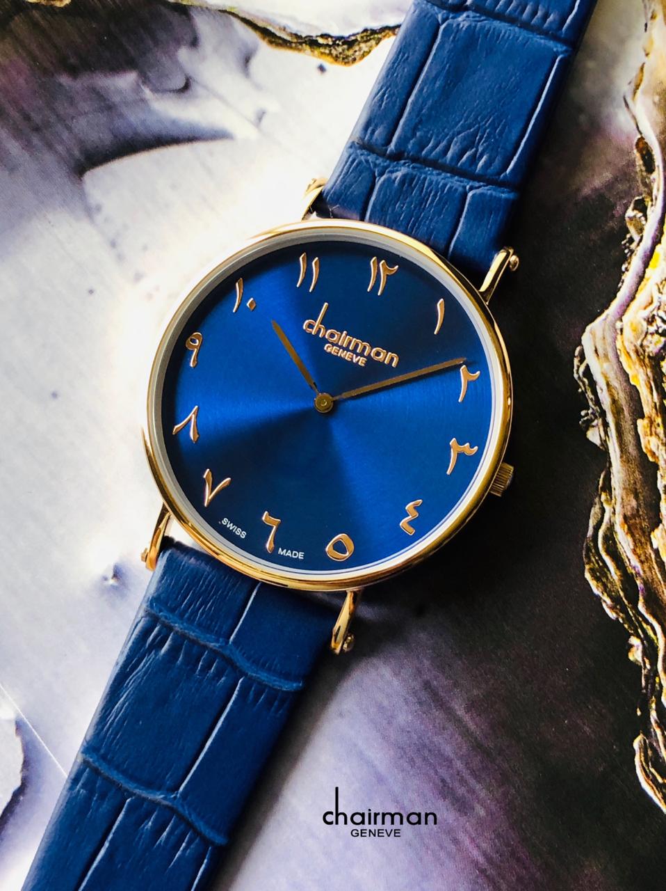 ساعة Chairman باللون الأزرق مع أرقام عربية وقرص