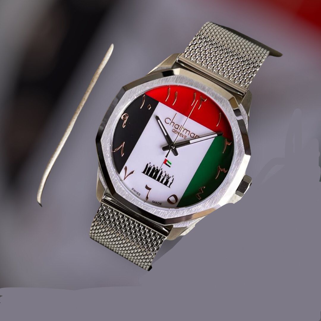 ساعة شيرمان كوارتز بحزام سلسلة مع مينا علم الإمارات العربية المتحدة للرجال