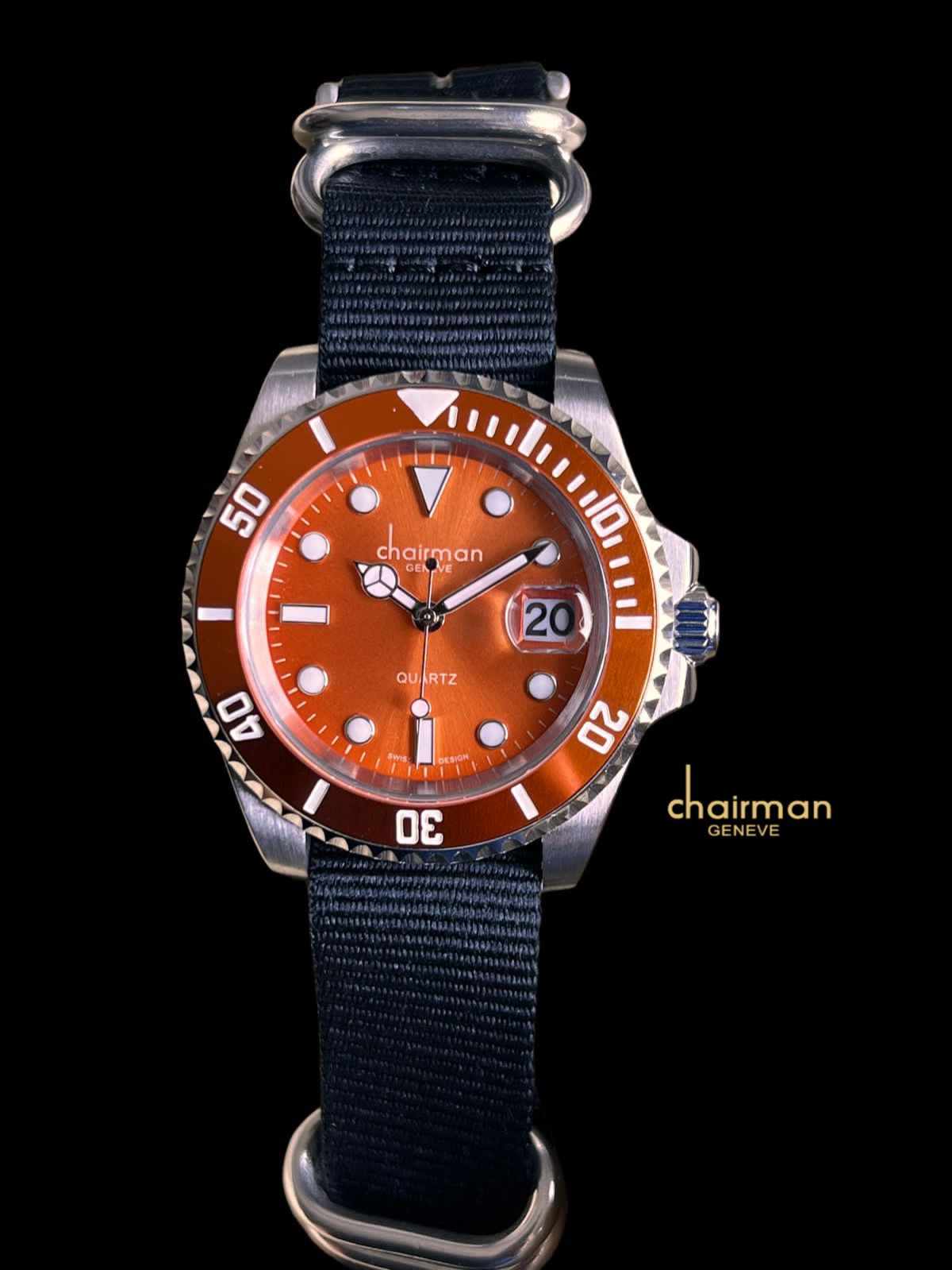 ساعة Chairman كوارتز أنالوج بسوار أزرق داكن ومينا برتقالية للرجال
