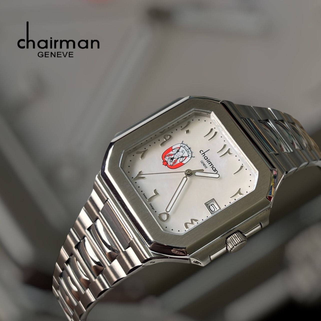 Chairman Geneve ABU DHABI Emblem Arabic Dated White Dial Silver Chain Gents Watch