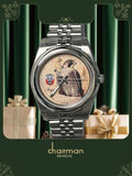 Elevate your style with the Chairman Geneve ABU DHABI Gents Watch. Featuring a distinctive beige dial accented by the iconic ABU DHABI emblem and a sleek silver chain strap, this watch combines elegance with a touch of exclusivity. Perfect for daily wear or special occasions, it offers reliable timekeeping with a sophisticated look that complements any outfit. Make a statement of refined taste and pride with this uniquely designed timepiece.