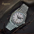 ساعة Chairman Geneve عربية مؤرخة بمينا وردي فاتح وسلسلة فضية للرجال