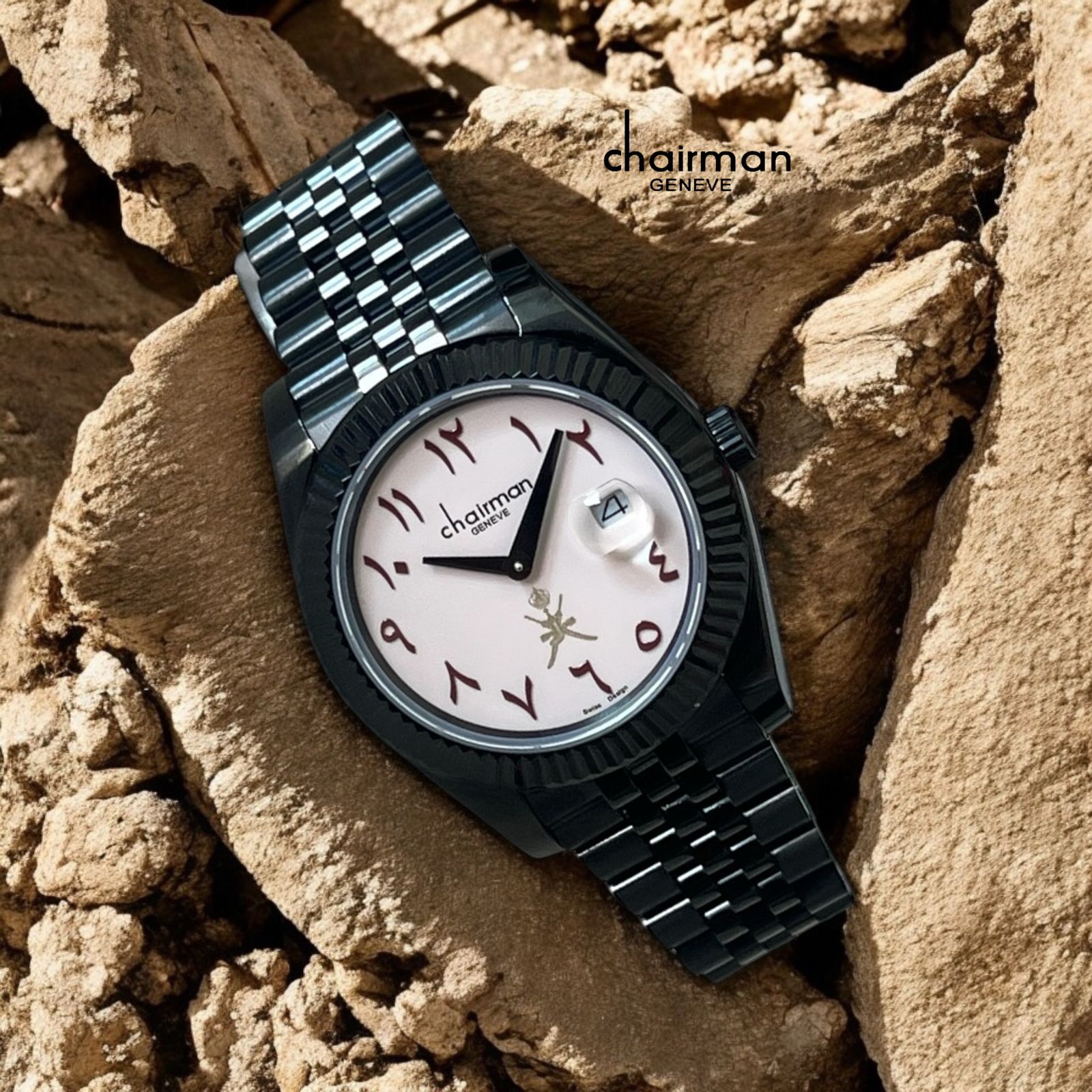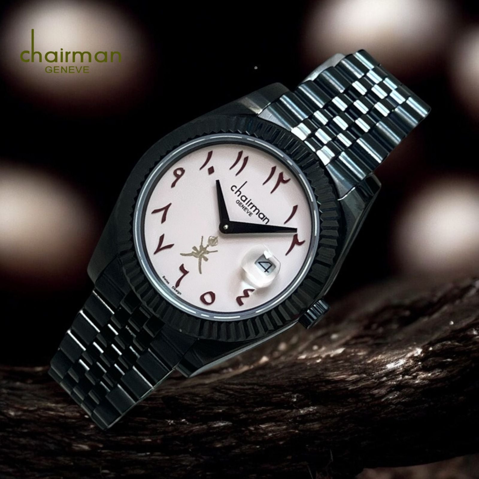 نقدم لك ساعة Chairman Geneve Arabic Dated Pink Dial Black Chain للرجال! تتميز هذه الساعة الأنيقة والعصرية بمينا وردية أنيقة بأرقام عربية وسلسلة سوداء متينة لإضفاء لمسة من الرقي. التزم بجدولك وتميز عن الآخرين بهذه الساعة التي لا غنى عنها.