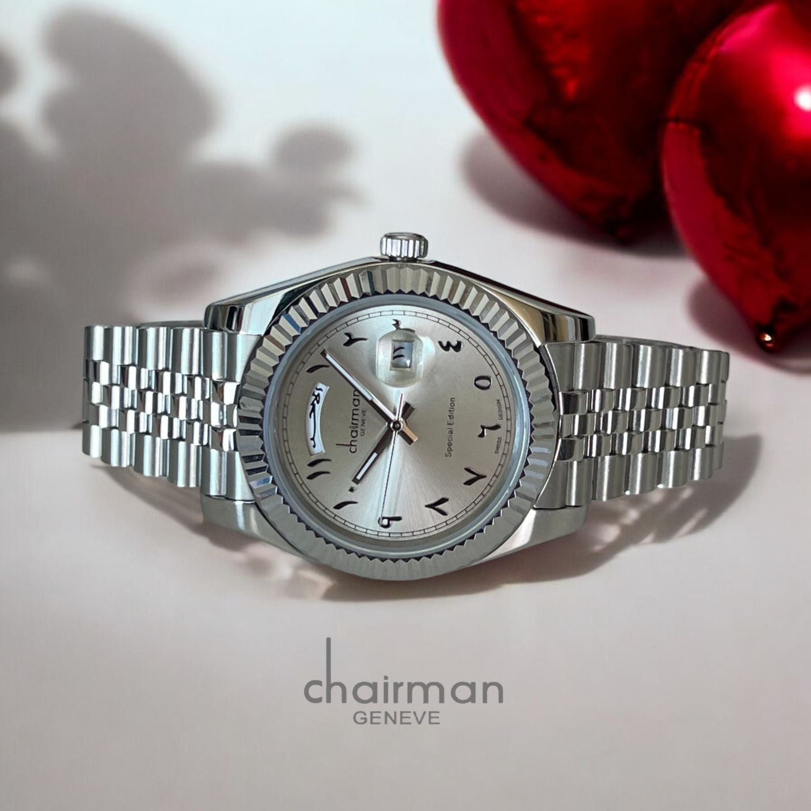 ساعة Chairman Geneve Arabic Day And Dated للرجال بمينا رمادية وسوار فضي