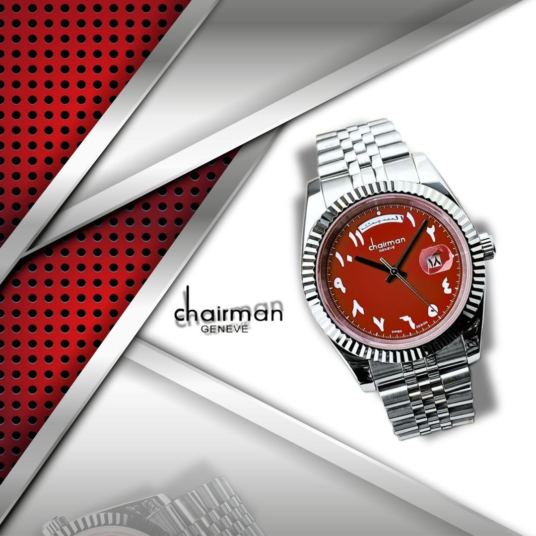 Experience elegance with the Chairman Geneve Gents Watch featuring a rich maroon dial detailed with Arabic day and date displays. Its sleek silver chain complements the sophisticated design, making it a perfect accessory for any occasion. This timepiece blends classic style with practical functionality, ensuring you stay punctual and stylish throughout your day.