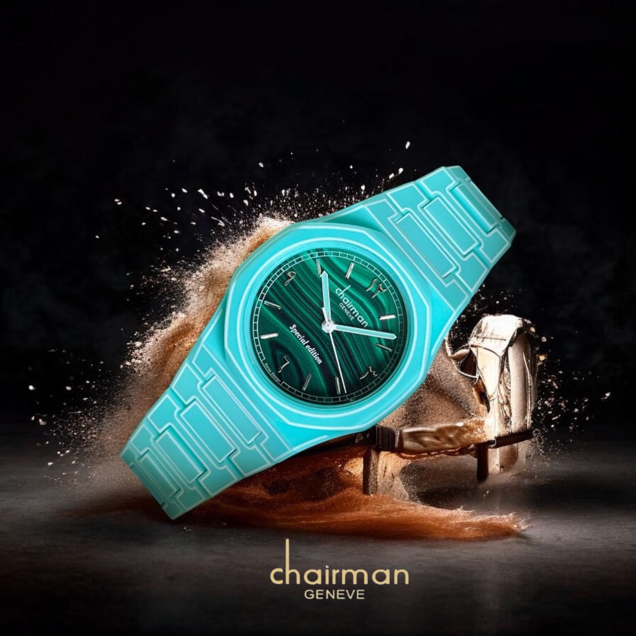 Elevate your wrist game with the Chairman Geneve Arabic Green Wave Dial watch. Featuring a stunning green wave dial with Arabic numerals and a sophisticated poly carbon construction, this timepiece combines luxury with durability. Perfect for the modern gentleman who appreciates distinctive style and precision craftsmanship. Make a statement wherever you go with this exclusive accessory.