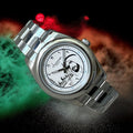 Elevate your style with the Chairman Geneve Arabic UAE Sheik watch. Featuring a striking white dial with elegant Arabic numerals and a sleek silver chain, this gents' timepiece blends tradition with modern sophistication. Perfect for formal or everyday wear, it offers reliable timekeeping and a distinguished look that captures cultural pride and timeless design.