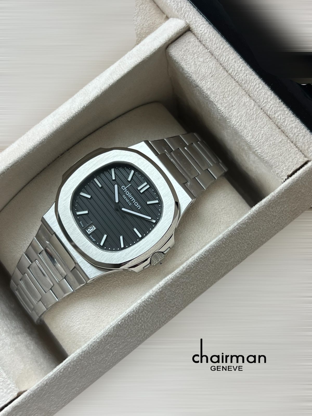 ساعة Chairman Geneve للرجال بمينا سوداء وسوار فضي