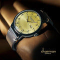 Elevate your wrist with the Chairman Geneve, a sophisticated timepiece that seamlessly blends classic elegance with contemporary style. Featuring a striking yellow dial with Arabic numerals and a practical date window, this gents watch delivers both visual appeal and functionality. The sleek black strap provides a versatile complement to any wardrobe, from casual to formal occasions. Precision-crafted for the discerning gentleman who values quality and timeless design, the Chairman Geneve is your everyday companion for making a refined statement.