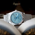 Chairman Geneve Dated Baby Blue Dial Silver Chain Gents Watch